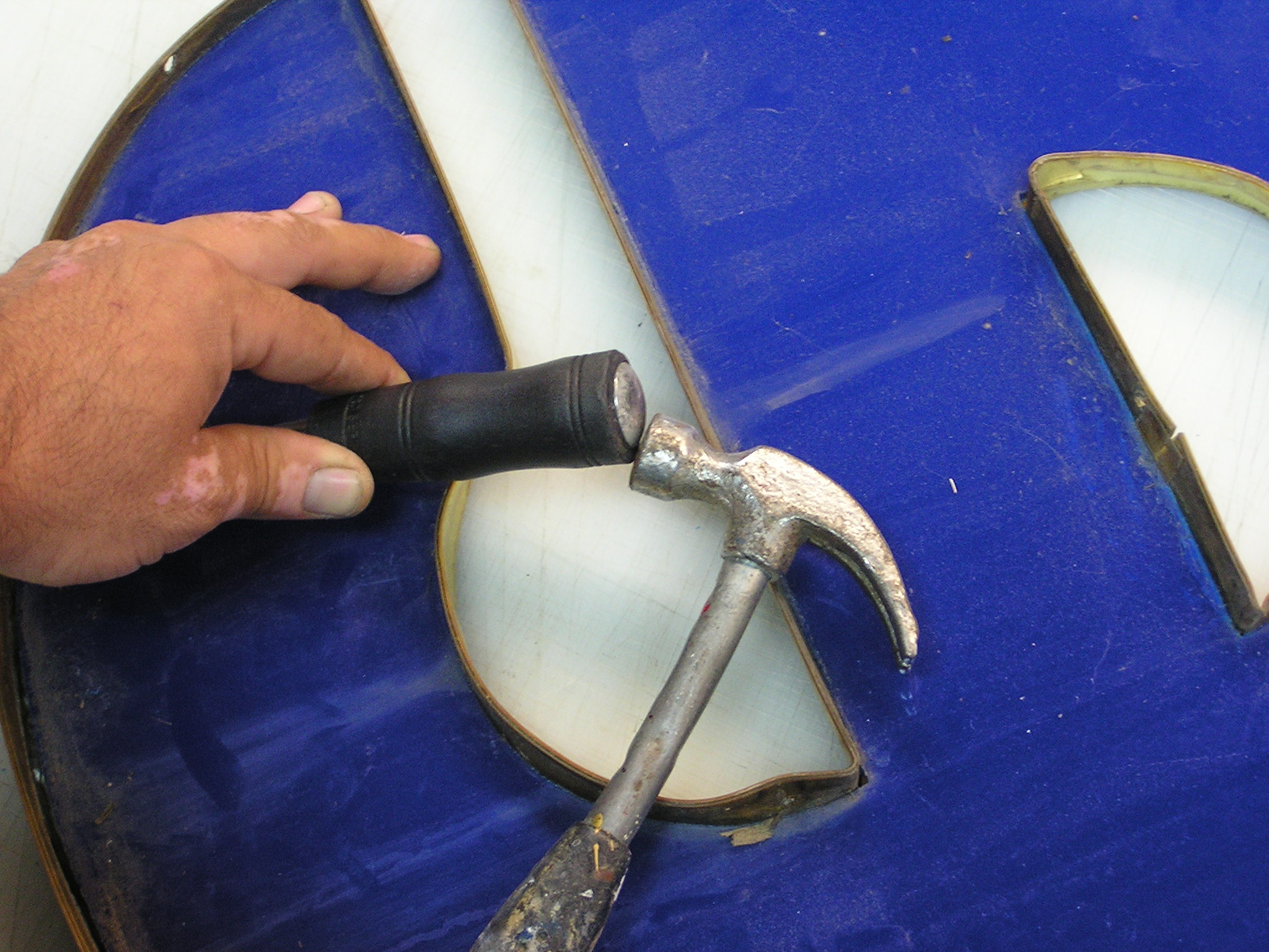Nails are hammered in to make sure the trim stays tight around the letter.