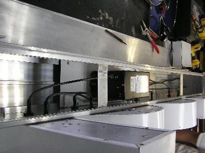 Inside the raceway with high voltage connectors for the neon for each letter.