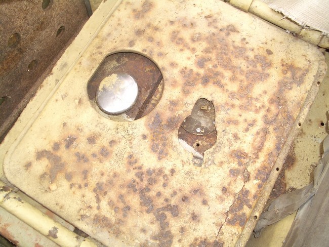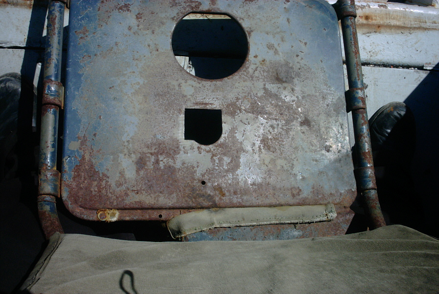 Nice original OD paint under the seat! At some point, someone cut the round hole to make it square. In Ray Cowdery's "All American Wonder 2", he had a picture of an original MB that a soldier bought. It shows the round hole as well.