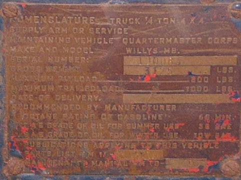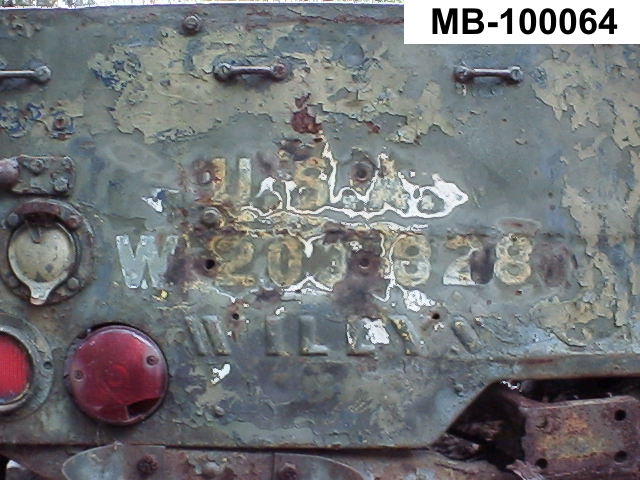 The eye bolts are bolted to the rear cross member. The rear cross member on MB-100063 behind the steel welded on it now does have these holes. It is not know if X10, X11 or X13 also participated in this test. X14 is a later MB so it has to be X10 through X13. If you notice on the rear panel, the registration number does not appear on X12. Instead, it has "4 x QUAD". "U.S.A." can be seen faintly above. MB-100063 was never assigned a DOD and did not have the areas stamped for the TM data. So no registration number assigned would be consistent with no DOD. The registration number would have looked like this as seen on MB-100064 (only one away for MB-100063!):