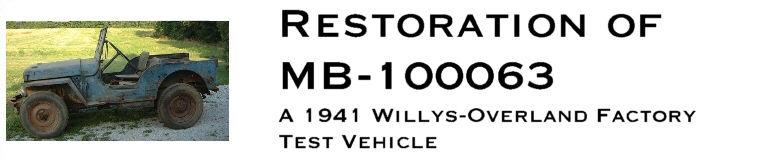 This jeep is one of the Willys-Overland test vehicles. It does not have a date of delivery and was found not far from the factory in Toledo, Ohio. More research is needed to determine which experimental X number was assigned to it. The X number was a number that was assigned by the Willys-Overland Engineering Department for their tests. These test vehicles were test platforms for various ideas that the engineers were working on for the MB development. As new ideas and parts were designed, if they needed to test it on an actual vehicle, MB-100063 would have been one of the vehicles that they would have used. Some photos of these vehicles exist so by comparing hole patterns and other modifications, it will eventually be able to determine which one it was. The years of it being used in post war farming makes it a little tough to determine what was a factory modification for a test and what was done by a farmer.