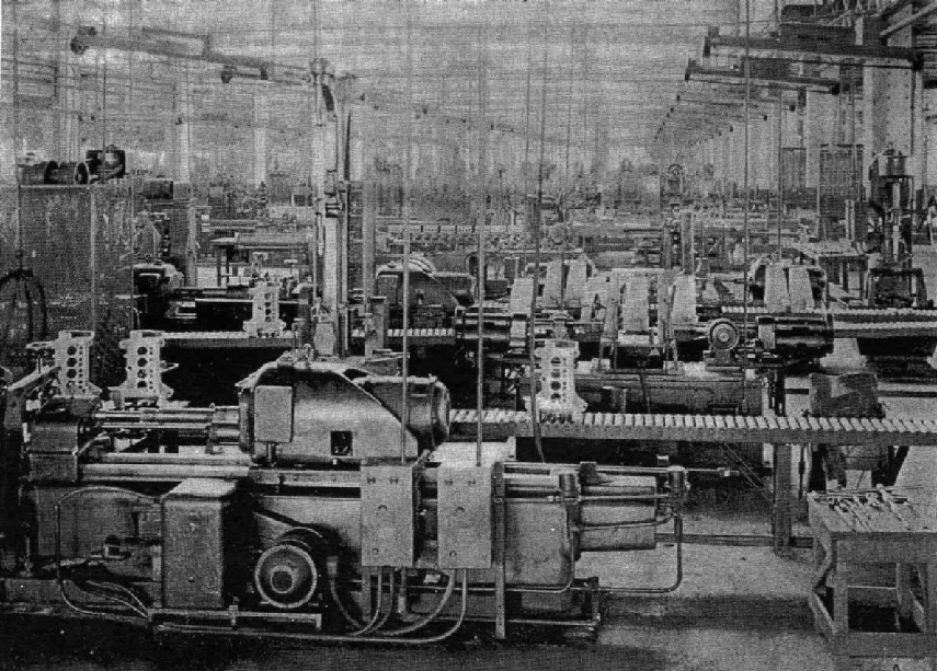 Photo A Crist ran a large, healthy operation while at Bantam. Shown above is the "Crankcase Line." Ted Nebel, Crist's son-in-law, worked on this line inserting main bearings. He also installed studs for the heads, flywheel housings, and assembled and mounted flywheel oil pumps. 25 to 40 engines per day were completed at a 1938 hourly wage of 38 cents.