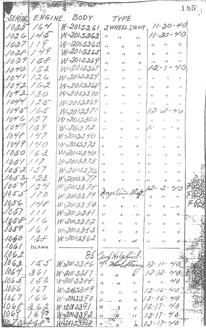 December 17, 1940 - Bantam BRC-60 Production Figures - 1035 - 1070 - Chester Hemphling details |